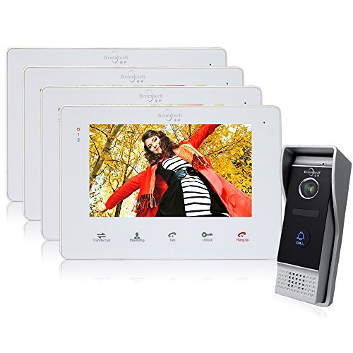 All images of Bcomtech Door Intercom System Wired 4 Indoor Unit(Display Monitor) 1 Outdoor Unit(Doorbell Camera) For Apartment Office Villa 1200TVL Infrared Leds Day/Night Vision with Door Release Waterproof