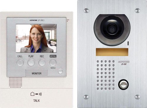 Aiphone JFS-2AEDF Audio/Video Intercom System with Flush-Mount Door Station with Stainless Steel Faceplate for Single Door, Accepts an Additional Door Station and Up to Two Sub-Master Stations