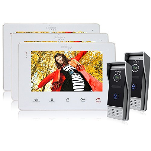 Bcomtech 7" Video Intercom Doorphone System With 2 Door Bell Camera HD 1200TVL and 3 Indoor Door Phone Recording Unit 2V3